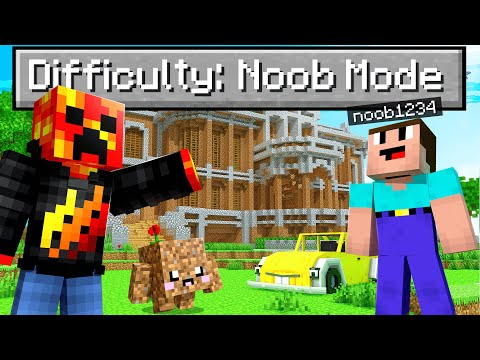 Noob1234 Difficulty Mode starts out with players in their own dirt mansion that provides them most of their basic needs, and even with its own car. It adds in tons of brand new derpy mobs, textures, pets, and even weapons! If you are looking for an easy night of Minecraft or an overpowered run to see how quick you can kill the dragon with your dirt cannon, then Noob1234 Difficulty Mode is for you.